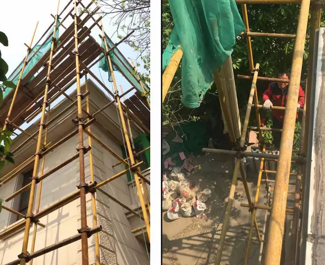 2、 需要搭設(shè)鋼管架直至屋頂,材料運(yùn)輸及垃圾清運(yùn)均通過(guò)吊機(jī)上下運(yùn)輸,工人上下屋面均需要爬鋼管架;