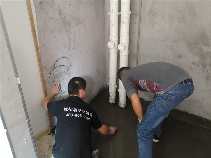 首先將墻面水電開槽用水泥封堵,進(jìn)行基層清理,防水涂料要涂滿,與基層結(jié)合牢固,無裂紋、無氣泡、無脫落,涂刷高度要一致。