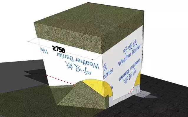 導水泛水板的目的是將屋面的水導離墻體,它是重要且極易遺漏的節點,遺漏的后果也是非常嚴重的。導水泛水板的制作并不困難,只要稍加注意,就可使建筑的墻體免受潮濕與腐爛的困擾。